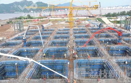 沉井浇筑今年4月起施工,北锚碇沉井由地下及地上两部分构成,施工人员先期需要在沉井中固定模板、捆扎钢筋,相关准备工作完成后,才能进行混凝土浇筑。沉井混凝土浇筑分10次进行,最先展开的钢壳混凝土沉井浇筑已经完成,本次浇筑是第二次施工,也是单次浇筑混凝土量最大的一次,近2万立方米。从第2至第10次都是现场浇筑混凝土。为了确保混凝土浇筑的质量,施工人员必须分层均匀展开浇筑,每一层浇筑的厚度只能控制在30厘米左右,且要用振捣器进行振捣,以挤压混凝土中的空气,起到强化密实作用,确保沉井的质量。