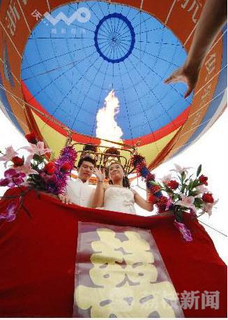 昨天,南京市六合巴布洛生态谷内举办了一场规模盛大的热气球空中婚礼,50只热气球,载着50对恋人缓缓升空,在蓝天白云下许下爱的诺言这次活动被上海大世界基尼斯认证为“中国之最”。