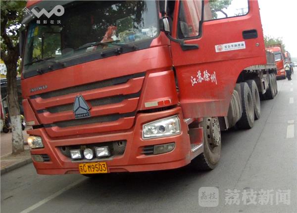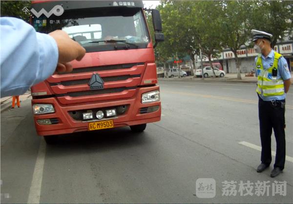 值勤民警在黄河南路执勤时,发现这辆黄牌大货车涉嫌闯禁区,便将车辆拦下进行检查。司机吴某是位中年男子,民警要求其出示证件时吴某解释说主车(牵引车)的行驶证拿去买保险了,只出示了后面挂车行驶证和驾驶证。