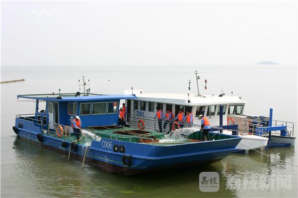 荔枝新闻记者今天(6月12日)从无锡市环保局获悉,无锡142公里的太湖岸线共设置了98个固定打捞点。对于开阔水域,一旦出现蓝藻,打捞人员用船只机动打捞。