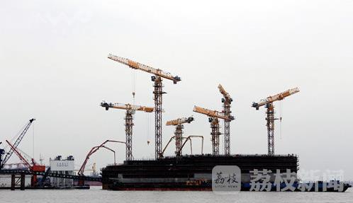 站在长江边迎风眺望,一溜高大桥墩傲然屹立,一座座塔吊高高竖起,800多名工人日夜赶工。这是近日沪通长江大桥一标段的工作场景。大桥目前全面进入上部结构建设阶段,完成任务量已达总量的60%,这座世界最大跨度的公铁两用斜拉桥已拉开框架、初展英姿。
