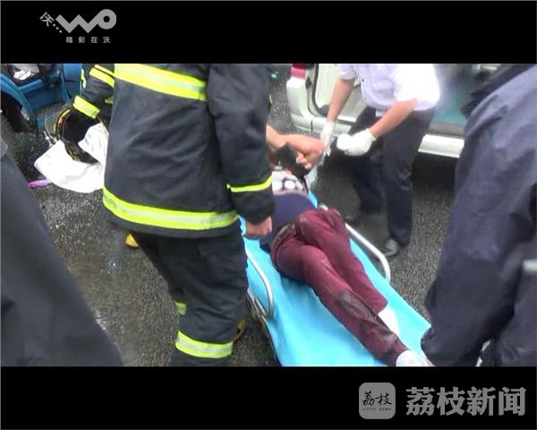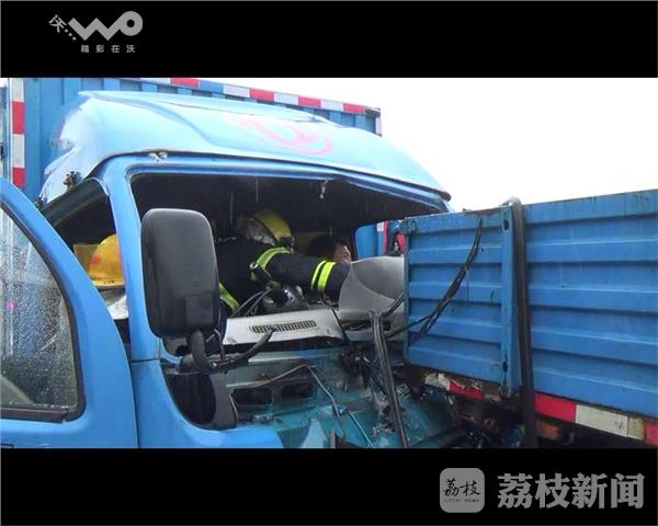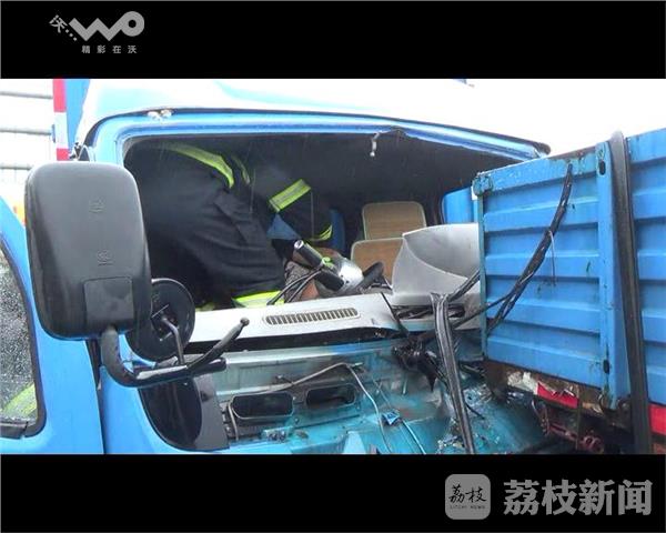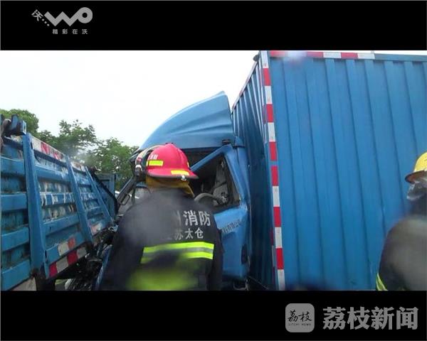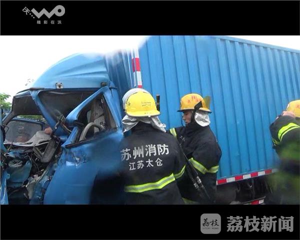昨天(6月12日)下午14时09分,苏州市消防支队太仓大队接到110指挥中心报警称,位于太仓339省道四通路与兴业路中间发生一起撞车卡人事故,有1人被困,急需救助。接到报警后,大队迅速调派太仓特勤中队2辆消防车13名消防官兵赶赴现场处置。消防官兵到达现场后,发现一辆厢式货车与一辆挂式货车追尾,厢式货车车头已严重变形,司机被卡在驾驶室内无法动弹,腿部受伤,且受到惊吓司机情绪比较激动,极度不配合救援人员展开工作。了解情况后,中队指挥员立即命令一组队员负责现场警戒工作;命令一组队员利用液压剪进行破拆救援,并安抚被困司机情绪。经过全体消防官兵约20分钟的奋力救援,被困司机被成功救出。经询问交警得知,车祸原因为挂式货车抛锚停在路中间,厢式货车司机由于下大雨未看见前车处于静止状态,一头撞上挂式货车尾部,导致司机被困。