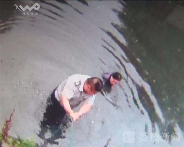 市民报警后,阳沟街派出所民警赶到现场。由于河道陡峭,民警正在想办法时,有市民拿来绳索,辅警韩师傅顺着绳子下到水里,来到落水女子面前后,韩师傅把绳子拴在女子腰上,岸上围观市民合力往上拉,顺利把她救了上来。所幸救援及时女子并无大碍,女子丈夫陆师傅赶到,把她带回家。