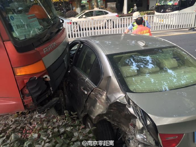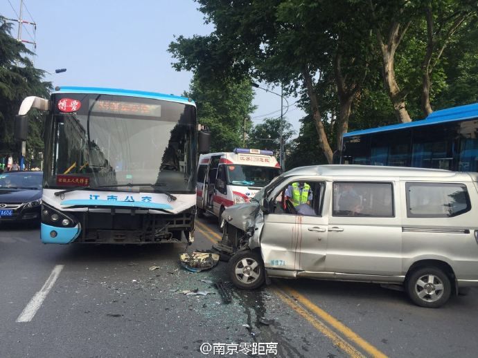 【清晨两起交通事故 三人受伤】今早7:00,南京中山东路,一辆油罐车先后撞上一辆宝马轿车和一辆铃木轿车,宝马车司机头部受伤,中山门进城方向拥堵。据了解,当时两辆轿车刹车避让行人,随后而来的油罐车刹车不及追尾。今早7:40,南京中山门大街,一辆面包车在双黄线突然违章掉头,一辆公交车避让不及与其相撞,公交车上没有乘客,面包车司机腿部骨折、头部流血,车内一名孩子受伤。