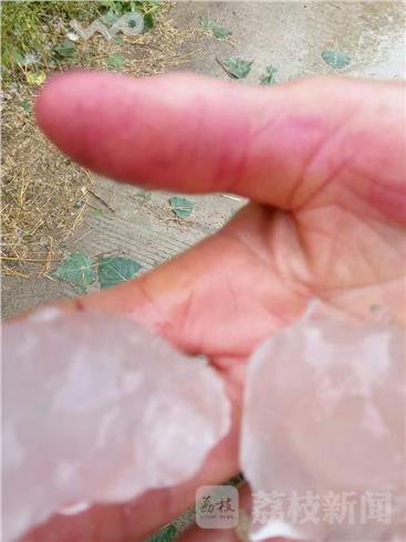 据了解,6月13日下午下午3点左右,涟水时码办事处钦工村一带遭受一场突入其来的冰雹大风强降雨袭击,冰雹达到板栗大小,降落持续10多分钟,造成时码办事处多亩大面积小麦被冰雹砸倒,农作物受灾,部分房屋受到损坏,在受灾最严重的钦工村,几棵大树被大风连根拔起,还有的树拦腰折断倒在路上,冰雹加大风将玉米成片叶子打掉,只剩下光光的杆子,好多村民家的太阳能管子被砸坏.这次的冰雹大风导致农作物不同程度受损。目前,县政府部门正在积极组织抗灾自救。