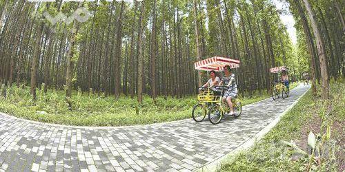 江苏黄海海滨国家森林公园是华东平原地区规模最大的人工森林,林地总面积2770公顷,森林覆盖率达66.6%,拥有各类植物652种、鸟类149种、珍稀动物50多种,负氧离子浓度每立方厘米平均含量达3800多个。集海滨林地自然之美、仙缘福地人文之美、东方湿地生态之美于一体的黄海森林公园已成为建设美丽东台最闪亮的一张名片。
