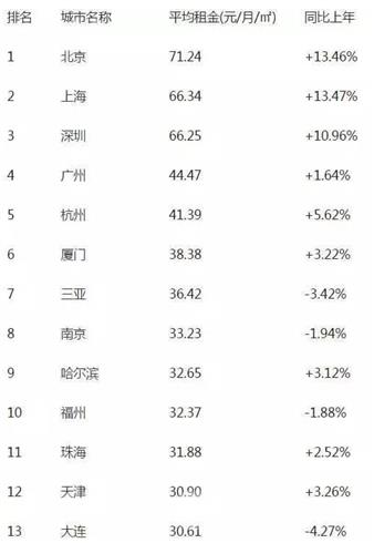 数据显示,北京的平均租金达到71.24元,也就是说在北京租一套100平方米的房子,价格要超过7000元,当然在中心区域,则远远不止这一价格。