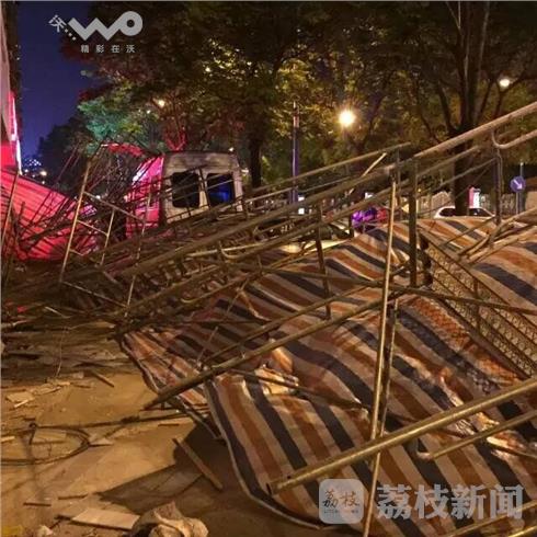 昨天(6月14日)晚上7点多,在苏州沙洲路张家港公园对面,一门面的脚手架突然倒塌,正好砸中停在其下面的5辆私家车。当时多位路过的市民目睹了这一场景。大家称当时声音很响。.随后警方也赶到现场处置。而至于脚手架突然倒塌的原因和损失情况目前警方正在调查。