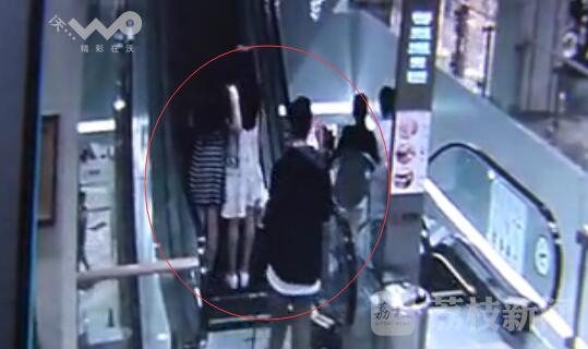 6月12日下午两点多的时候,在杭州西湖银泰二楼的自动扶梯旁,两名年轻靓丽的女子抓着一名带着口罩的男子不放,商场保安领班告诉记者我们,这名男子在偷拍姑娘的裙底被抓了现行。