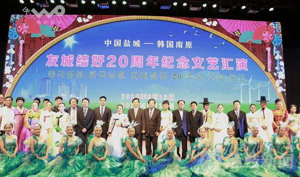 盐城市与南原市在20年的相互交往中,两座城市地缘相近,人脉相亲,经济合作良好,文化交流频繁。在此次文化交流活动中,韩国的艺术家先后为盐城观众奉献极富韩国民俗传统文化特色的婚礼、服装秀、器乐散调重奏、驱煞舞、春香歌等,以及具有盐城浓郁地域特色的歌舞、杂技、淮剧等节目。晚会现场,掌声不断,观众反映热烈。