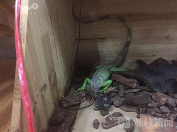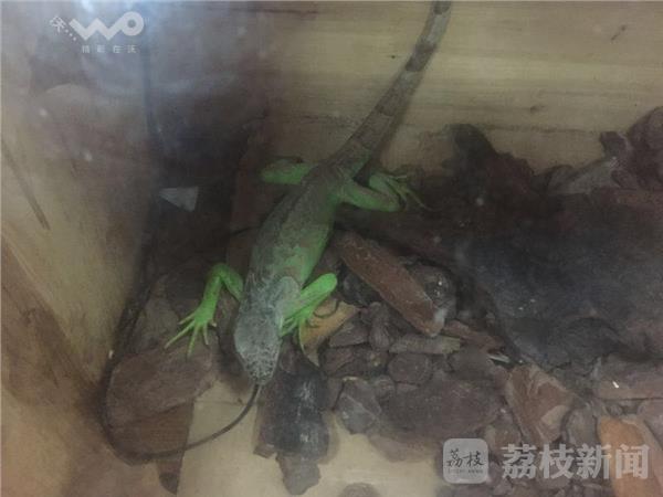 6月初,警方接到市民举报,南京秦淮区花木鱼虫市场有家水族店在悄悄售卖国家保护动物。这家店在店面售卖的都是允许销售的宠物,但是店里不少玻璃缸都用黑布盖着。6月8日,民警对这家水族店进行了突击检查,在盖着黑布的缸里发现了国家二级保护动物绿鬣蜥。