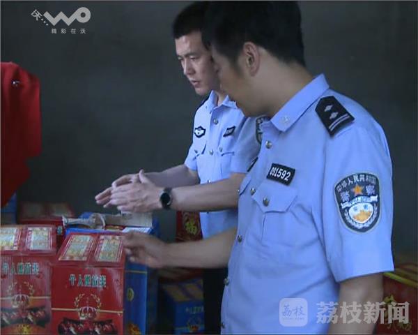 民警来到三英村五组陈某家中,经民警检查该仓库是一间没有任何审批手续的黑仓库。打开普通房门大小的仓库门,两间仅10几平方米大小的房间里,烟花是堆放得满满当当。而就在民警对烟花进行查处时,一旁的房东竟然还抽着香烟。