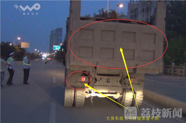 民警随即,对两辆车涉嫌闯红灯,以及不按规定安装号牌,以及放大号牌不清的违法行为进行纠证并对其进行处罚。晚上8点多,民警在徐运新河路口,又发现一辆大货车的放大号牌不清楚,而且这辆车的前后车牌也模糊不清,民警立即将其拦下对其进行查处。