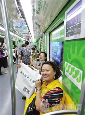 继南京之后,苏州也有环保地铁啦!荔枝新闻记者今天(6月20日)从苏州市环保局获悉,苏州本月开通“环保号”轨交专列,外观上借用车身原有的白色主基调,配以绿色元素作为辅助点缀的设计风格,通过绿色发电、绿色能源、绿色建筑、绿色出行等写意图案点明生活方式绿色化主题;车厢内在车门、拉手、顶贴等位置张贴节水、节电、不浪费食物、绿色出行、垃圾回收利用、保护生物多样性等反映生态文明、绿色生活的宣传海报,让每天流动的乘客在“流动的环保课堂”中感受绿色生活理念。