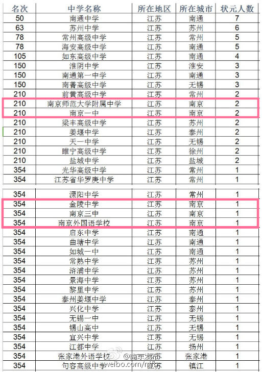 艾瑞深中国校友会网发布《2016中国顶尖中学排行榜》,南京有5所中学上榜: