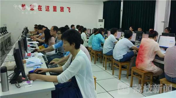 盐城市中考阅卷从21日起正式启动,记者在现场看到,阅卷教师按照科目分配在不同的教室,每人面前一台电脑。休息哨声响起时,阅卷老师们扭扭脖子、揉揉眼睛,隔着窗户眺望远方。一位老师说“阅卷一个半小时,休息20分钟,这个强度可比平时上课大多了。”