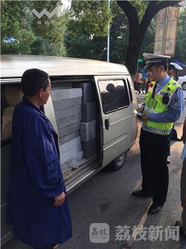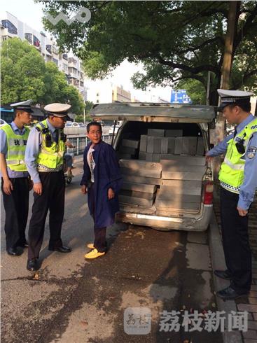 2016年6月22日晚18时许,南京交警六大队中央门中队民警巡逻到建宁路金桥装饰城门口时,发现前面一辆小型普通客车后车厢严重下沉,轮胎气压过低,于是拦车检查。