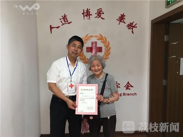 南京市红十字会的工作人员为俞奶奶办理了捐赠手续,清点善款,并开具发票及捐赠证书,南京市红十字会副会长张杰亲手为俞奶奶颁发了荣誉证书,并对老人的多年的善举表示感谢。