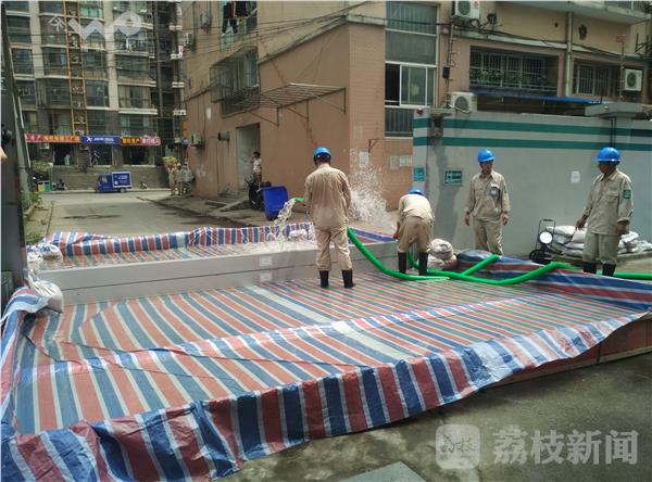 今天演练模拟的是暴雨大风强对流天气下,受暴雨影响,位于南京铁心桥的凤翔变电站周边水位上涨,临近警戒水位。南京供电公司变电运维室副主任官金兴:“我们这边地下有电缆层,水进来后会把电缆淹没到水里,如果水势再高到设备这边,会造成设备跳闸,这样会造成,周边(一大片小区)影响用电。”