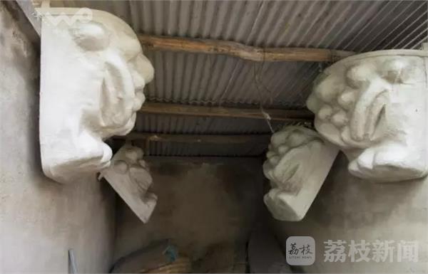 走进二楼这间工作室,到处都摆满了各种不同规格型号的纸塑狮子头和模具,石荣圣细心抚摸着狮子头上的涡旋,感慨的说,纸塑狮子制作技艺十分复杂,又很辛苦,需要多年锤炼才能熟习。首先,他要用土制作模具,然后用泡好的桑皮纸一层一层裱糊在模具上。