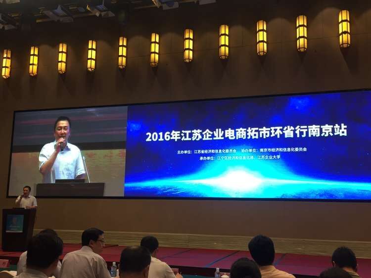 6月23日,2016年江苏企业电商拓市环省行活动在南京启动。江苏省经济和信息化委员会副巡视员、江苏省企业信息化协会会长闫浩出席活动致辞,并为江苏省电商服务联盟揭牌;与会的还有江苏省有关市、县经信委负责同志,及江苏省电商服务联盟各成员企业代表。近200家南京市大中型企业负责人参加了此次活动。