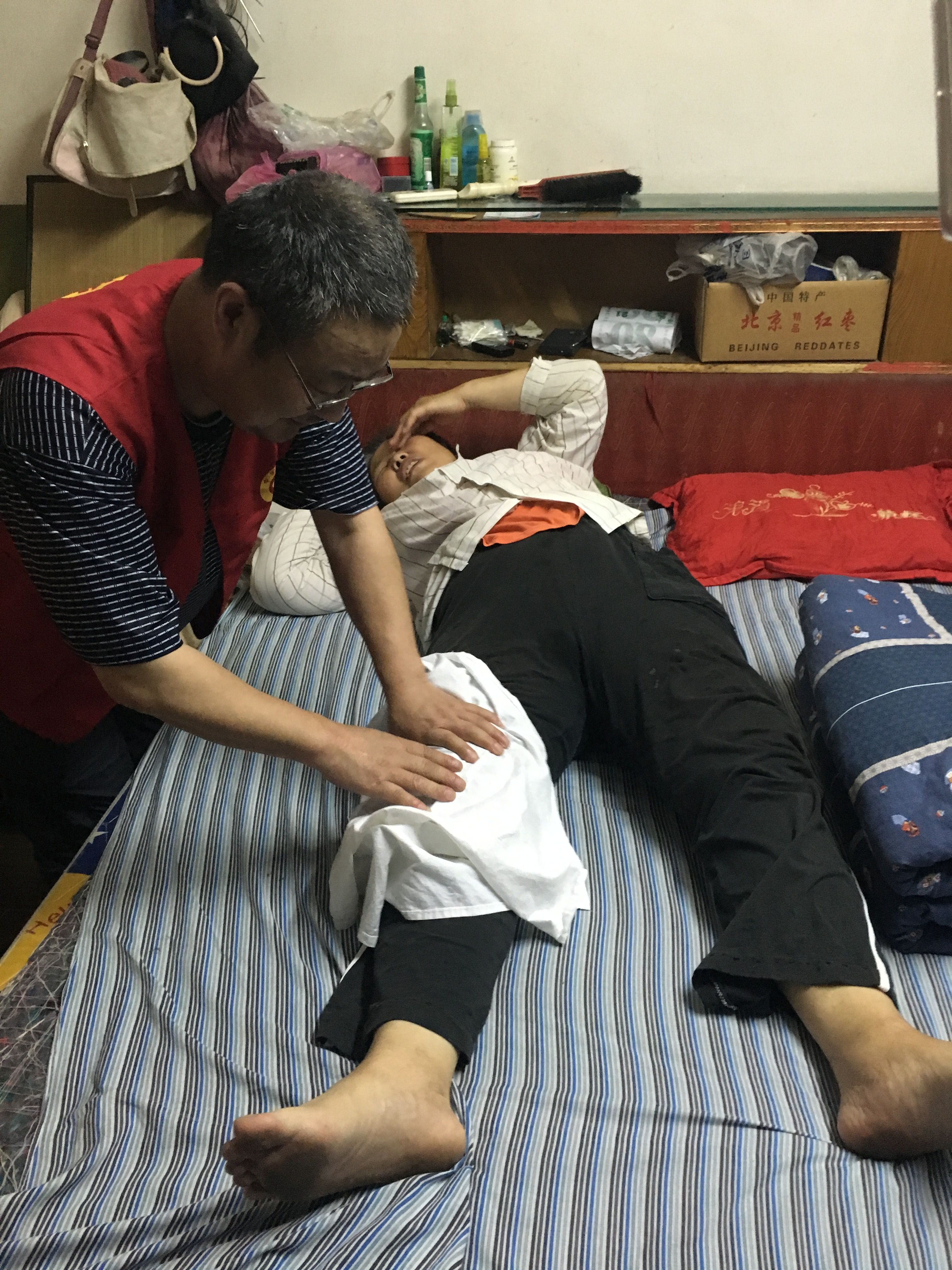 提到杨达智,卧床的沈全娣连连称赞,“他比儿子都好!如果没有他,我可能早就不行了。”由于一次中风留下了后遗症,老人右侧都不能动,血脉长期不通危及生命,多亏了杨达智每周来给她做两次推拿,帮她疏通经络,缓解疼痛。