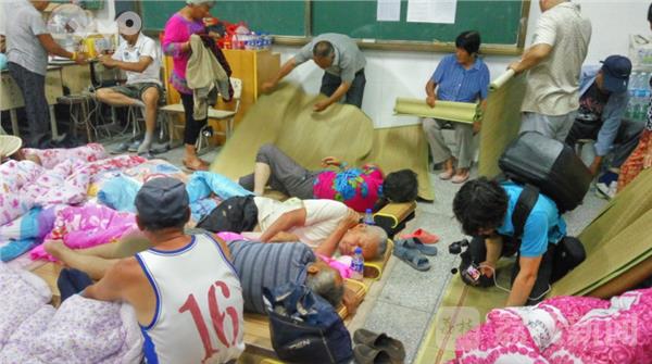 6月24日晚上8点,笔者跟随盐城红十字志愿者们将盒饭,饮用水及生活物品开车运到灾民集中安置点阜宁县硕集中心小学,由当地负责接收援物工作人员分发给受灾群众。