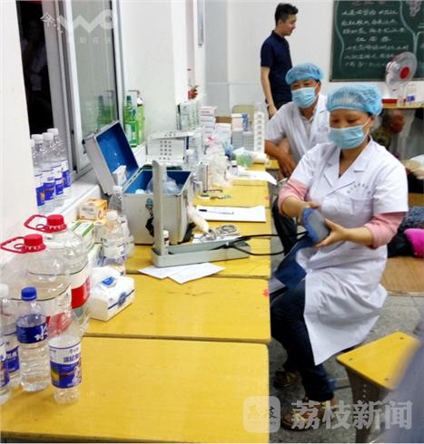 笔者在安置点内笔者看到这里的医护人员们已经24小时未合眼了,可他们一直在坚守着自己的工作岗位并未停止手中工作,这里值班的医护人员为每一位进入安置点的村民进行检查和治疗。