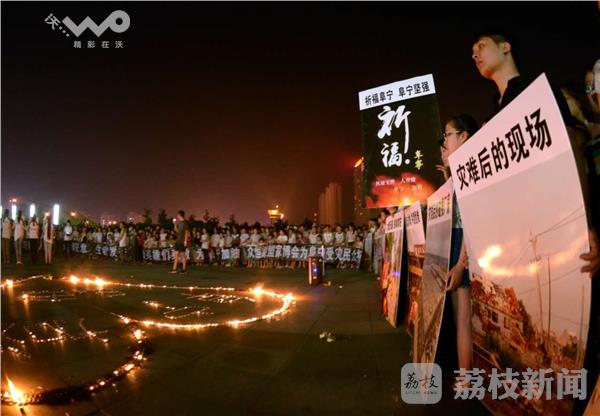 今天(25日)晚上,盐城阜宁县数百位群众聚集在县城天鹅湖公园自发举行烛光祭,祭奠在龙卷风冰雹特大灾害中的遇难者,为阜宁未来祈福!
