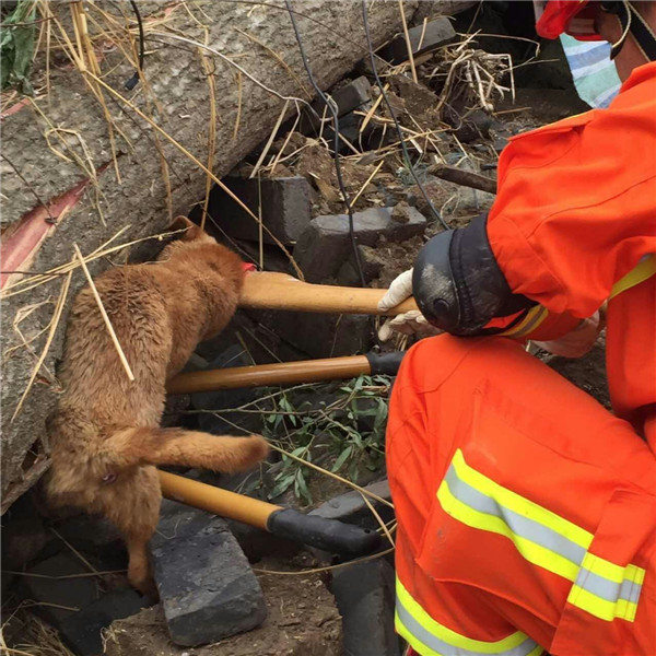 常报全媒体讯 常州消防救援队在阜宁硕集镇计桥桥清障救援,在回撤路上,救援人员听到路边有呜咽声,发现在废墟下的水泥管中有两只小狗被困,立即将他们救出。两条狗没有受伤,脖子上有锁链,可能是事发时雨大,小狗自行躲入水泥管中逃过一劫。(芮伟芬)