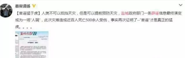 人类不可以抵挡天灾,但是可以提前预防天灾,盐城政府部门一条辟谣信息最终演变成为一场“人祸”。盐城气象台称“未来十天并无强降雨等对流自然灾害”。