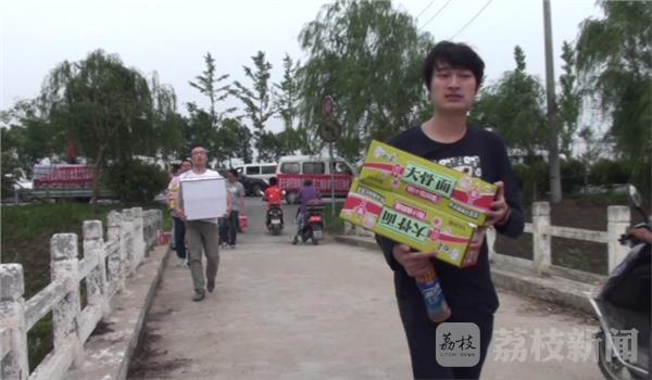 盐城阜宁受灾群众遭遇立刻引起社会广泛关注,盐城包括周边城市志愿者纷纷行动起来献出爱心。6月25日下午,盐城阜宁当地志愿者纷纷走进灾区第一线为灾民分发食物水果和瓶装水,爱心物资都是志愿者自费购买包车前往灾区献爱心,现场看到大城小爱志愿者们不仅为灾区群众送来水果和纯净水,连面粉和包子也送来了,其中小王是来自南京的市民,当看到新闻后自发前往灾区加入大城小爱志愿者团队为灾民送慰问品。