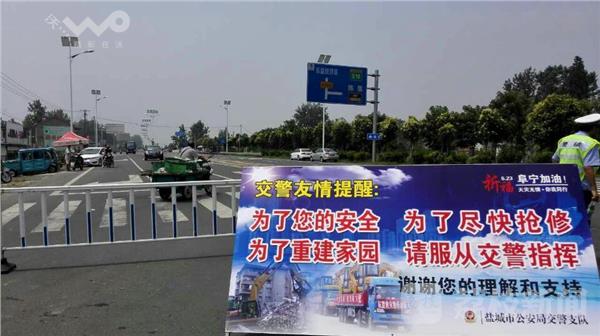今天,26日上午9点,阜宁县公安局向社会发布通告,对灾区部分道路实施管制。记者赶往管制现场途中,发现沿途已经竖起了管制诱导牌。