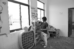 现代快报记者昨天来到事发的大班教室里看到,教室里还有几个书包,地上的瓦片碎块仍在,玻璃窗破了好几块,还露着狰狞的尖角。