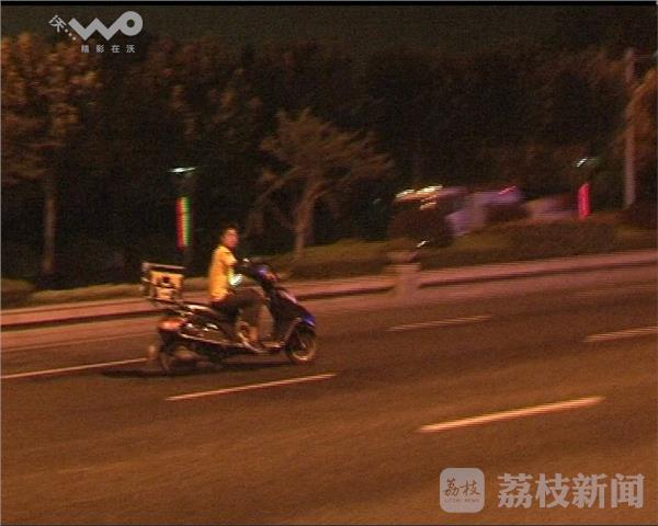 就在荔枝新闻记者采访时,一辆电动车从摔倒的自行车旁疾驰而过。