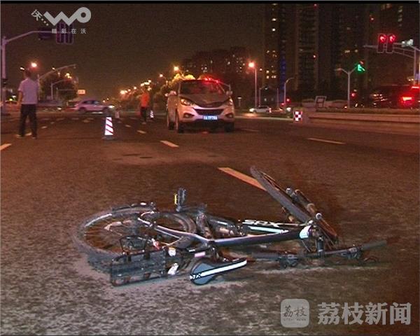 6月26日晚9点,南京建邺区江东中路奥体中心北门口,一辆自行车在快车道骑行时,被一辆轿车撞倒,骑车男子因头部和手臂受伤被送进了医院。