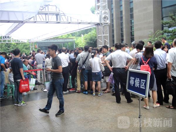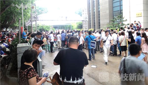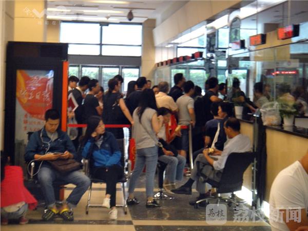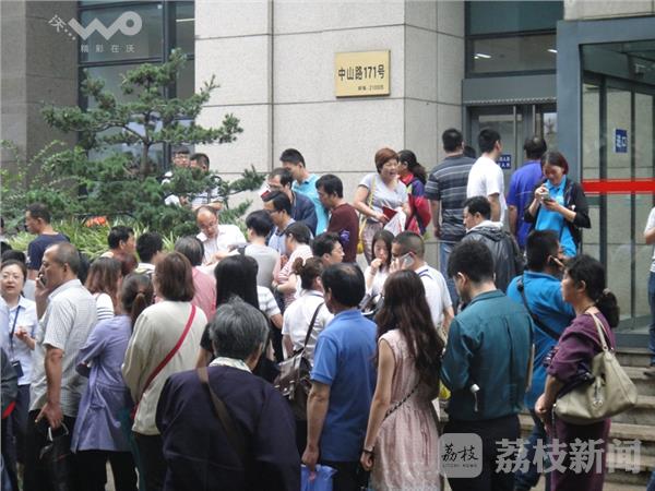 今天(6月27日)是南京市国土局为市民办理土地证的最后一天。明天起南京将全面停止土地证办理,开启和实施不动产证书的登记和办理工作。傍晚17时,荔枝网友经过中山路171号南京不动产登记大厅门前看到,距正常17:30下班只剩半个小时,但门厅外广场上仍挤满了前来办理土地证的市民,网友仔细一看,不仅是大厅里里三层外三层,就连大厅外也排着长长的队伍。