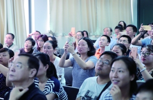 鼓楼区小学电脑派位现场,家长代表对着电脑一阵猛拍