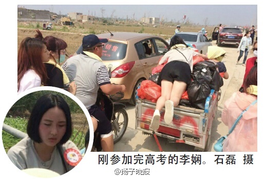 “啊?真的被拍下来啦?”志愿者李娴没有想到,她会以“趴车妹”的形象成为“新闻人物”。由于志愿者堆在三轮车上的物资实在太多,李娴只好趴在车上,防止货物掉落。