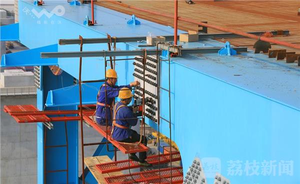 倍受南通市民关注的沪通长江大桥建设正在有序推进。经过中交二航局850天建设,沪通长江大桥HTQ-1标段,铁路、公路钢梁桥体已初现雏形。