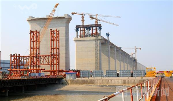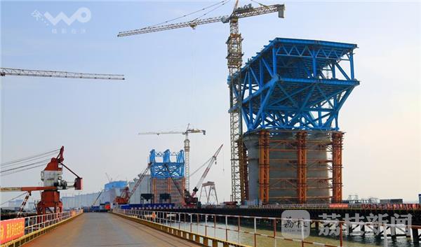 沪通长江大桥主航道桥跨度1092米,主航道桥6座桥墩基础均采用沉井基础施工。南通段26、27号边墩预计下月底前完成墩身施工。