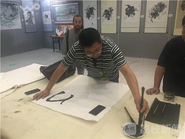 今天上午,在江苏书画院成立8周年之际,一百余名江苏书画界艺术名家汇聚一堂,挥毫泼墨,共庆八周年。出席活动的艺术家向江苏书画院捐赠了书画作品。艺术家们还现场挥毫献艺,虾、猴等水墨画跃然纸上,一幅幅书法作品一挥而就,引发现场观众喝彩!记者在现场了解到, 今天活动现场所有作品将在七月份进行慈善拍卖,所得款项将全部捐往盐城龙卷风受灾地区,用于灾区重建。
