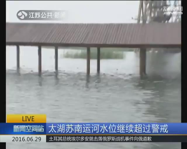 水文数据显示,截止昨天下午三点,太湖水位已经上涨到4.24米,超过警戒水位0.44米。大运河枫桥站水位也已达历史最高4.5米,超出警戒水位0.7米。目前,环太湖已经启动联动封航,禁止一切船舶通行,苏南运河也实施了交通管制。