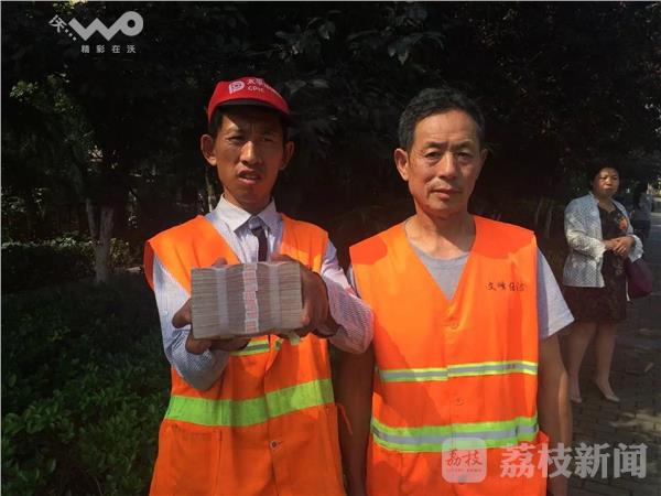 今天(6月30日)清晨5点30分左右,盐城市亭湖区文峰保洁公司的环卫工李万顺、李林父子在清扫市区腾飞路段时,在路牙边上捡到一只黑色的拉杆箱,包内放有捆扎整齐的一摞现金。上午9点左右,李万顺把现金交给了赶到现场的民警,经民警现场清点,这一摞整整齐齐的现金共10万元。