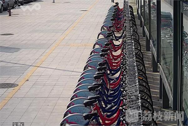 在南京公共自行车公司的调度大厅,荔枝新闻记者看到,电子大屏的一张地图上能清楚显示目前主城的部分公共自行车站点。点开其中一个,上面可以清楚直播当前站点车桩、车辆甚至电压、温度情况。“紫金东郡北这个站点,锁桩有48个,有车锁桩33个,空桩14个。这上面显示1号桩上有车,34号桩无车。”南京公共自行车公司工作人员一边指着电子屏显示图一边说。