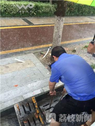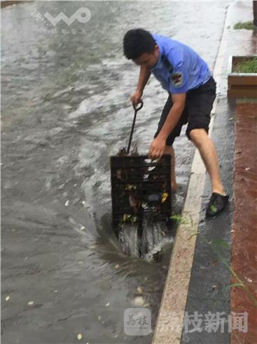今天南京一度暴雨如注,在南京经济技术开发区的道路上,出现了一个蓝色的身影,他在雨中疏通了一个个下水道。据了解,他是开发区刚刚招来的队员,不少市民看了很感动,“小伙子辛苦了”。