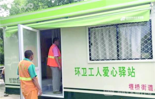 有了这个“房车”,环卫工大太阳时可以凉快歇脚,天寒地冻时可以喝杯热水,下雨天可以有个地方躲雨,有了补充体力、休息吃饭的好场所。