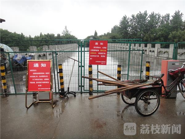 今天(7月2日)下午,荔枝新闻网友前往位于秦淮区的七桥瓮湿地公园探望水情,发现七桥瓮湿地公园已成一片泽国,为确保人身安全,公园已于今天下午起闭园,禁止一切车辆和人员出入。