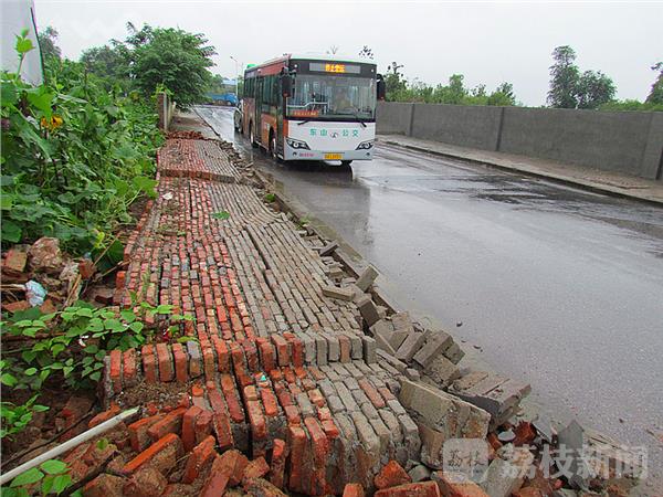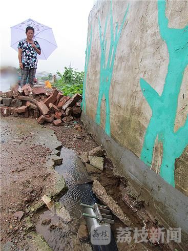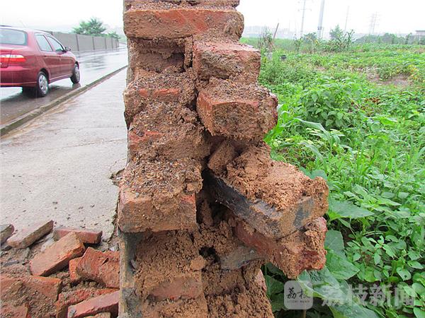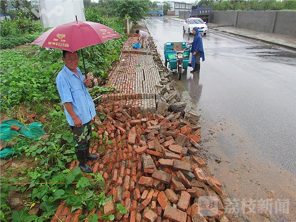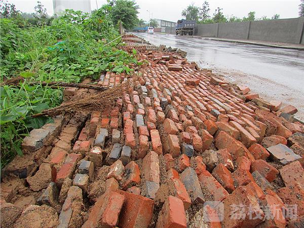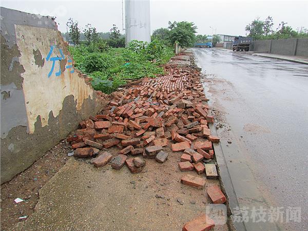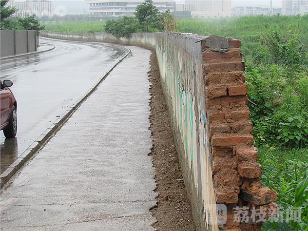 2日下午,驾车经过麒麟科技园,在南京市城管总队麒麟科技园综合执法队门前,一条小路上,看到一垛长约几十米长、高不足两米的砂浆砖墙已坍塌,砖头齐刷刷的立在路边,现场一片狼藉。在现场看到,这是一处空地围墙,其中一段几十米长、高不足2米的砖头围墙倒塌在地。仔细观察,这垛围墙是2014年修建的,墙面粉刷着“分享青春 共筑未来”标语图案。据附近的民工讲“昨晚突然听到 ‘轰隆’一阵巨响。”路边的围墙坍塌了。由于事发时正值晚上,又下大雨,此处没有行人。据现场多位民工讲:“上半年自来水公司在围墙跟脚挖沟埋自来水管,根基回土没有打牢,加上雨水浸泡,出现松动,轰的一声倒地。”