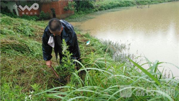 今天(7月3日)上午,南京江宁街道大庙社区的龙庵水库大堤个别地方出现管涌,险情就是命令,社区在加固除险时发现河埂上有大量杂草,这给社区巡查险情带来不便。听说情况后,社区今年70岁的老党员夏正银主动冒着大雨到河埂上,带把镰刀前来割杂草,为排险扫清障碍,老人说,一旦大堤不保,下游400户居民,700多亩的庄稼将不保,在夏老的感召下,龙庵村的群众自发参与进来,从早上到下午三点,150米的大坝正反两面半人深的杂草被清初干净,给防汛队员巡查管涌现像带来方便,特别是夜间的巡查。夏老说,党员是面旗帜,特别是老党员,大灾大难面前就要冲在前,做榜样!